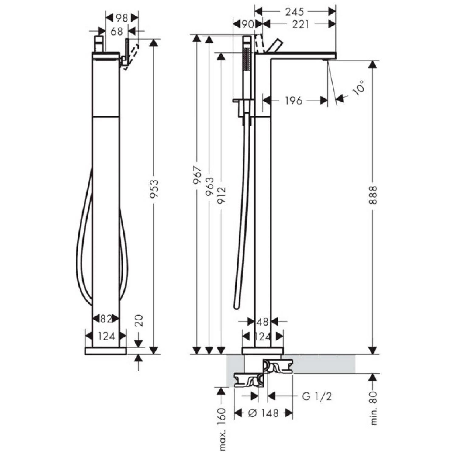 AXOR MyEdition Einhebel-Wannenmischer bodenstehend mit Glasplatte