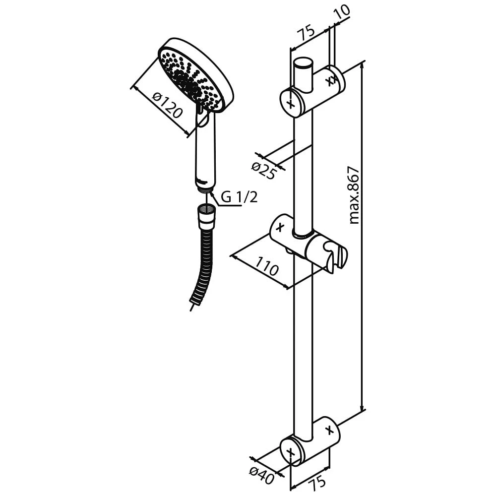 Steinberg Serie 120 Brausegarnitur Eckig Mit Brausestange 90 Cm