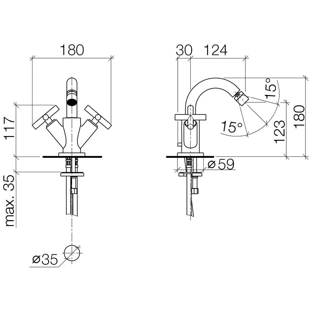 Dornbracht TARA Bidet-Einlochbatterie mit Ablaufgarnitur