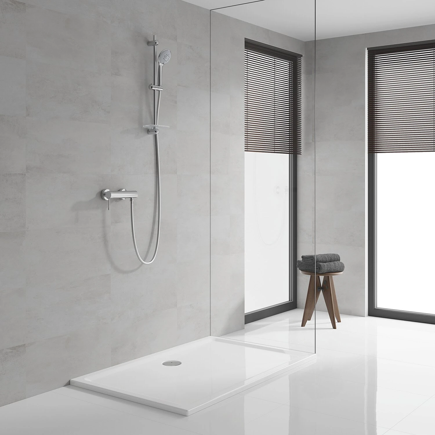 - GROHE QuickFix® (für verstellbare Distanz zwischen den Wandhaltern; Wandhalter aus Metall)