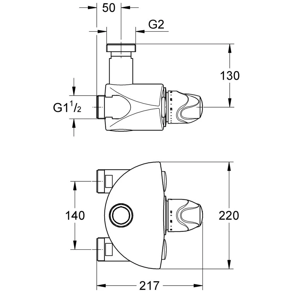 - Temperaturwählgriff mit voreinstellbarem Sicherheitsendanschlag zwischen 33°C und 43°C