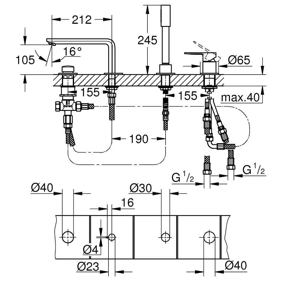 GROHE Lineare Neu 4-Loch Einhand-Wannenkombination