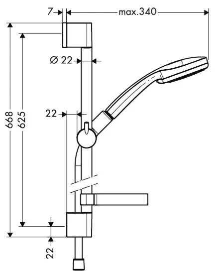 - Besteht aus: Handbrause, Brausestange, Brauseschlauch, Schieber, Seifenschale