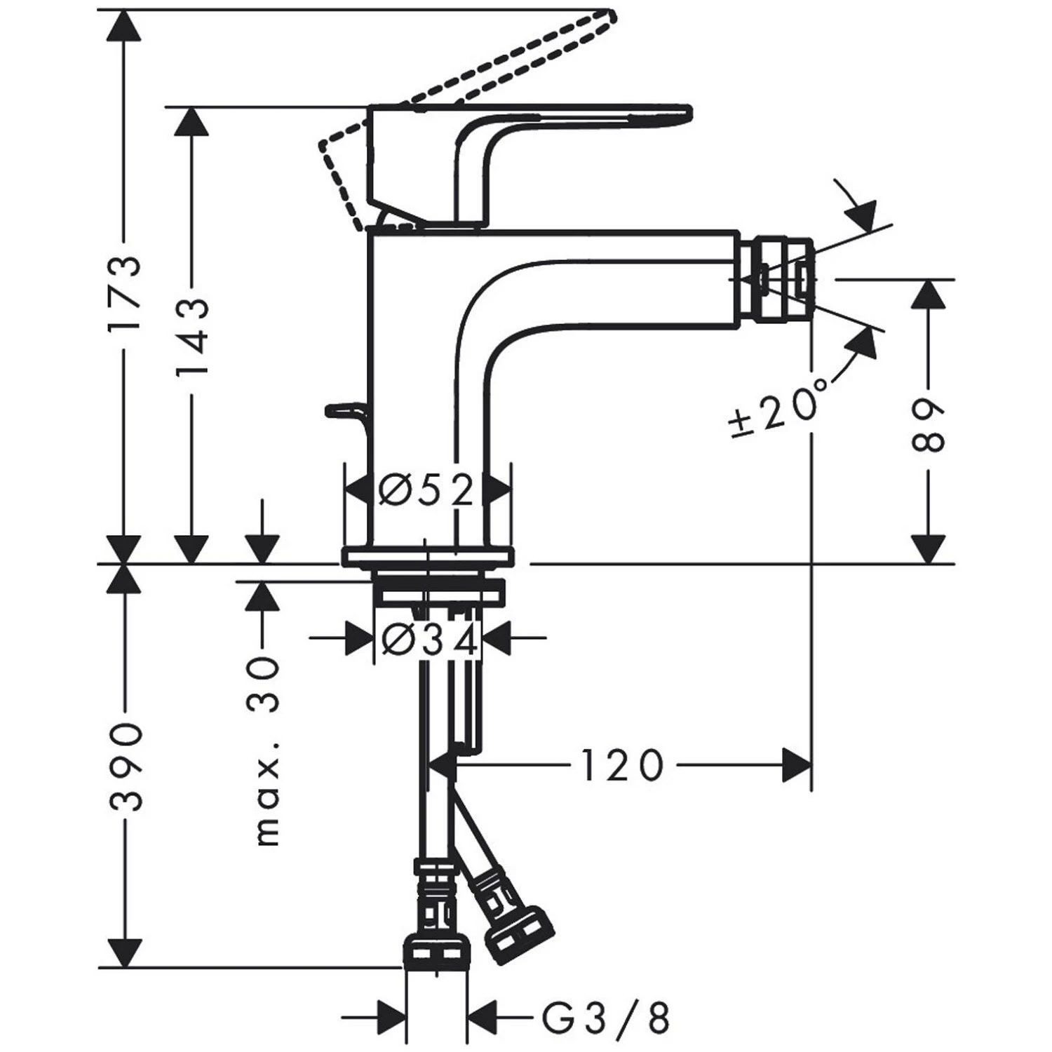 hansgrohe Rebris S Einhebel-Bidetmischer mit Zugstangen-Ablaufgarnitur