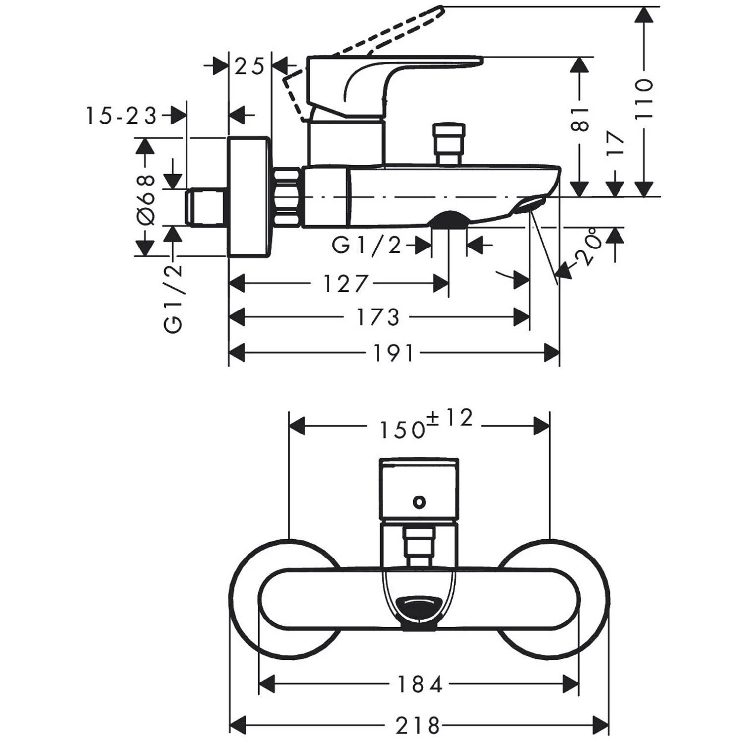 hansgrohe Rebris S Einhebel-Wannenarmatur Aufputz