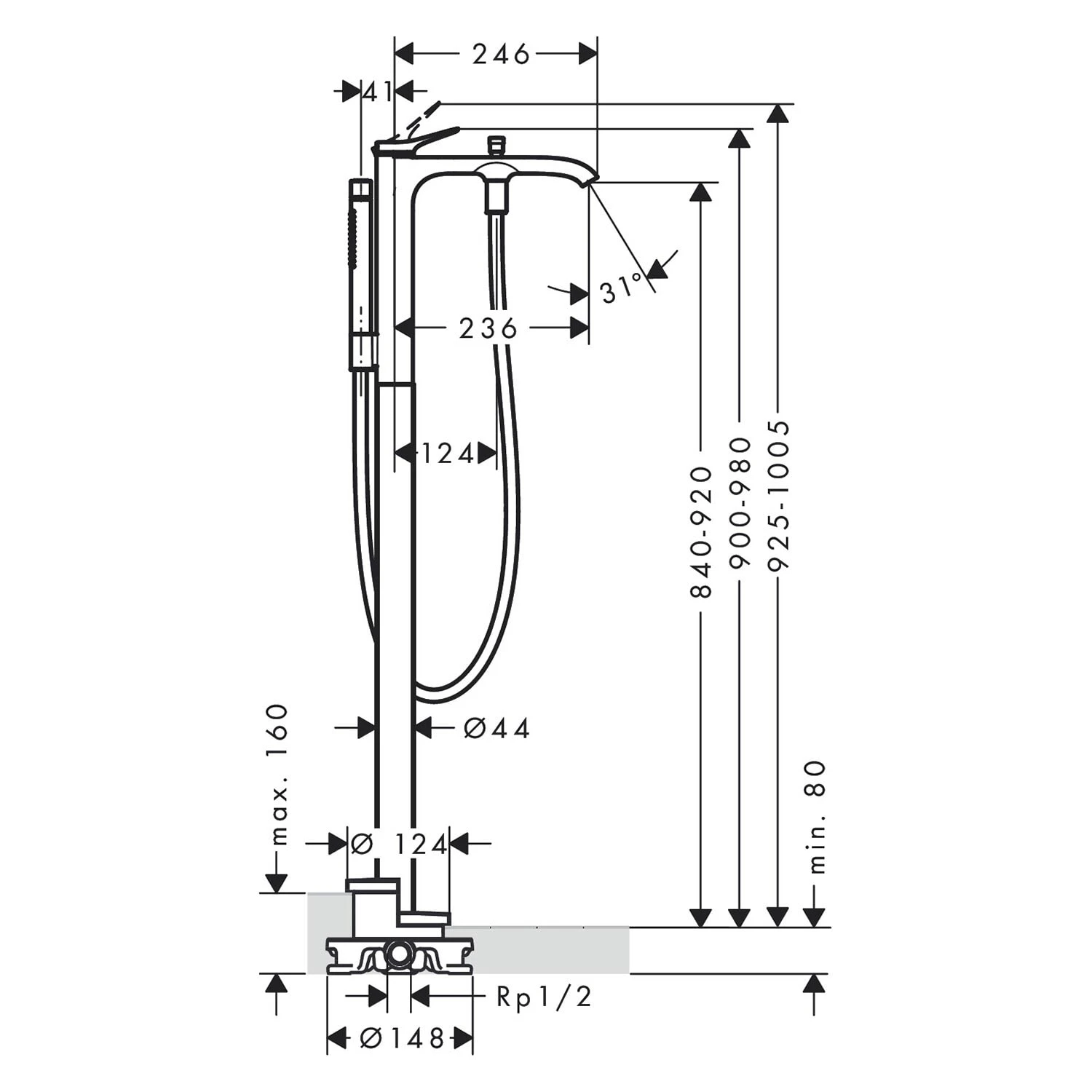 hansgrohe Vivenis Einhebel-Wannenarmatur bodenstehend