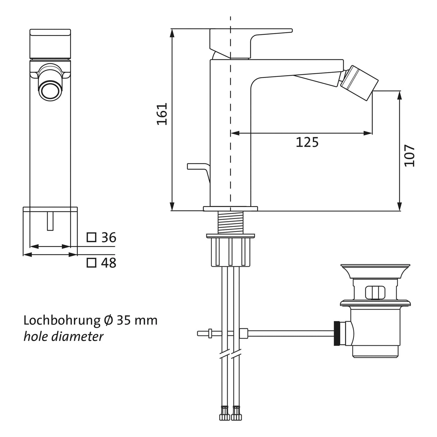 Herzbach CEO IX-FINISH Bidet-Einlochbatterie mit Ablaufgarnitur