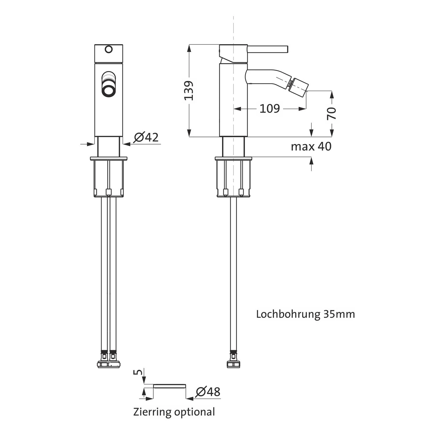 Herzbach DEEP WHITE Bidet-Einlochbatterie ohne Ablaufgarnitur