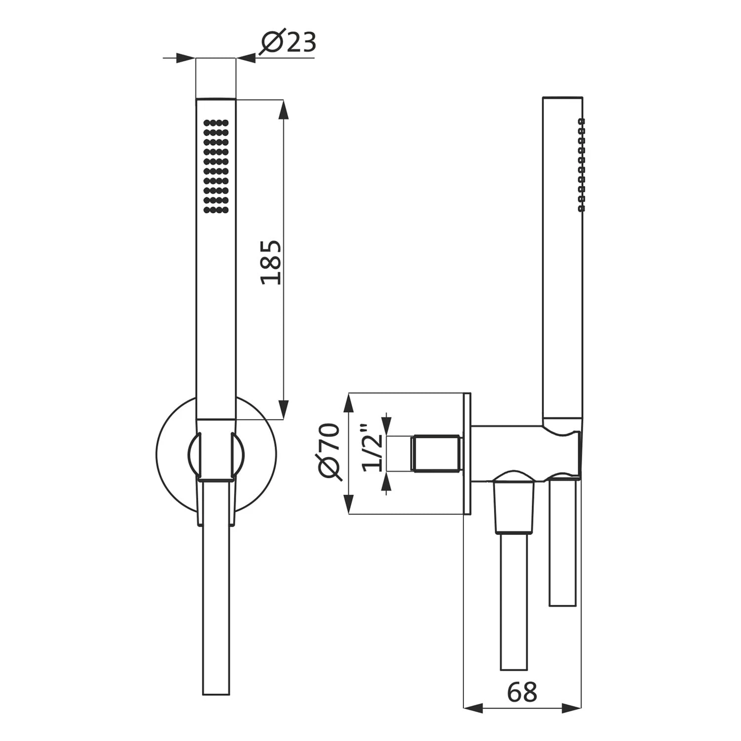 Herzbach DESIGN IX PVD BLACK STEEL Wannenset mit Konushalter und integr. Brauseanschlussbogen seven round 160 cm