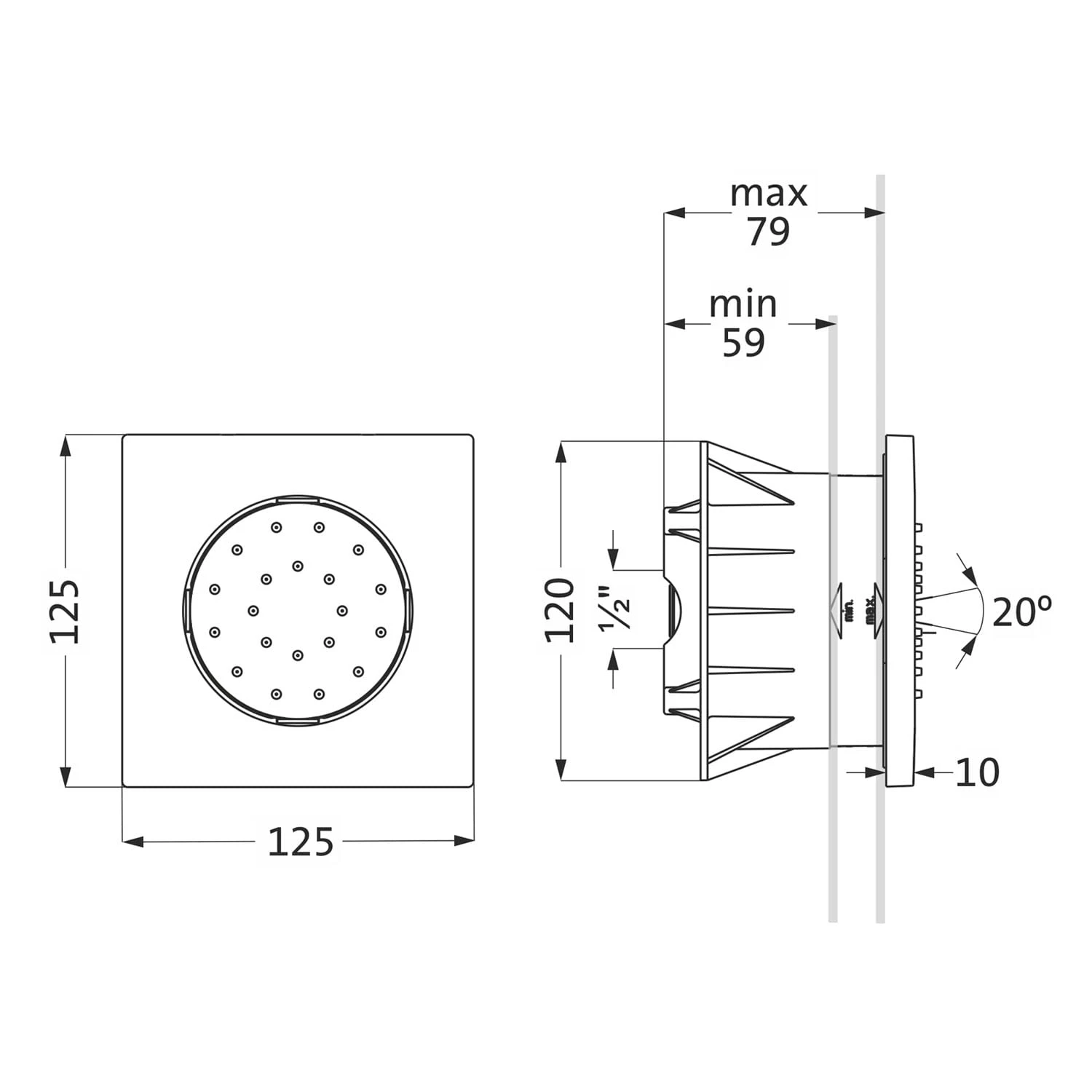 Herzbach Living Spa Unterputz-Seitenbrause, eckig