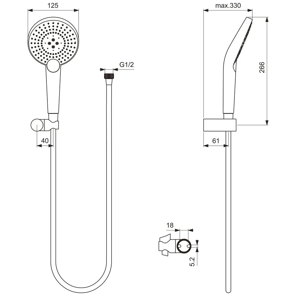 | Abmessungen | Handbrause: Ø 12,5 Schlauch: 125 cm |