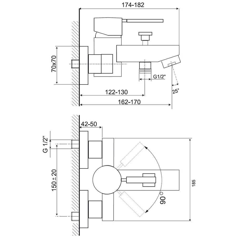 Kaja Bquadrat Einhand-Wannenfüll- und Brausearmatur, ohne Brausegarnitur