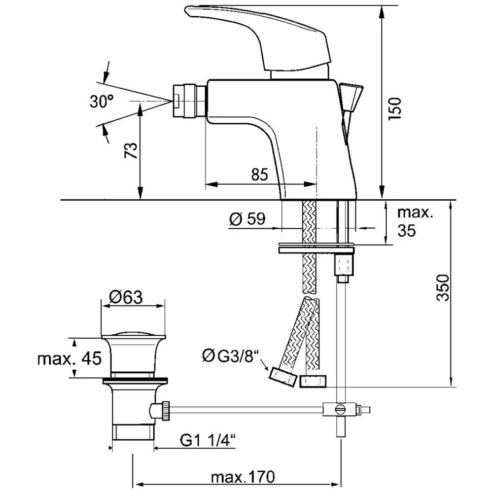 Kaja MIX Einhand-Bidetarmatur mit Ablaufgarnitur