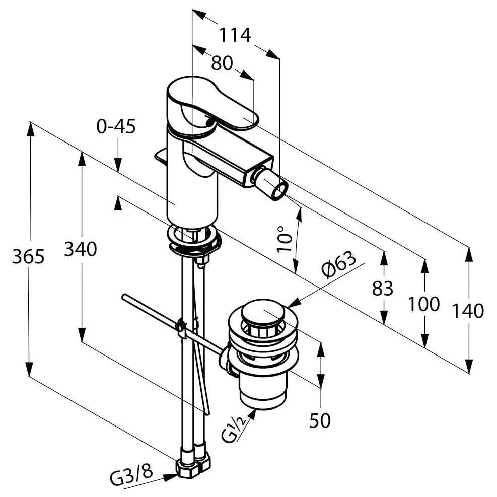 Keuco Edition 90 Square Einhebel-Bidetmischer Mit Zugstangen-Ablaufgarnitur, Ausladung: 11,3 Cm