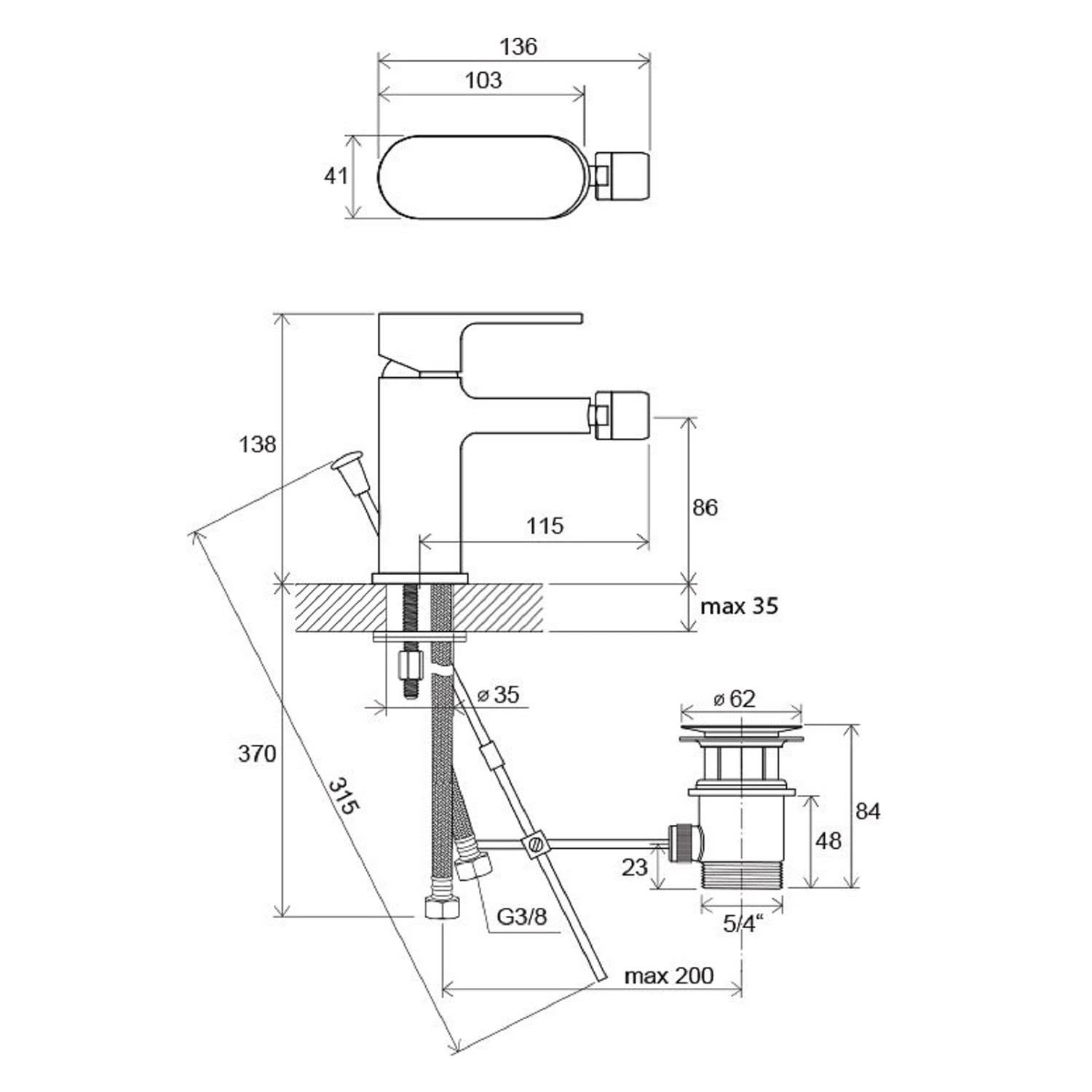RAVAK Chrome Einhand-Bidetbatterie mit Ablaufgarnitur
