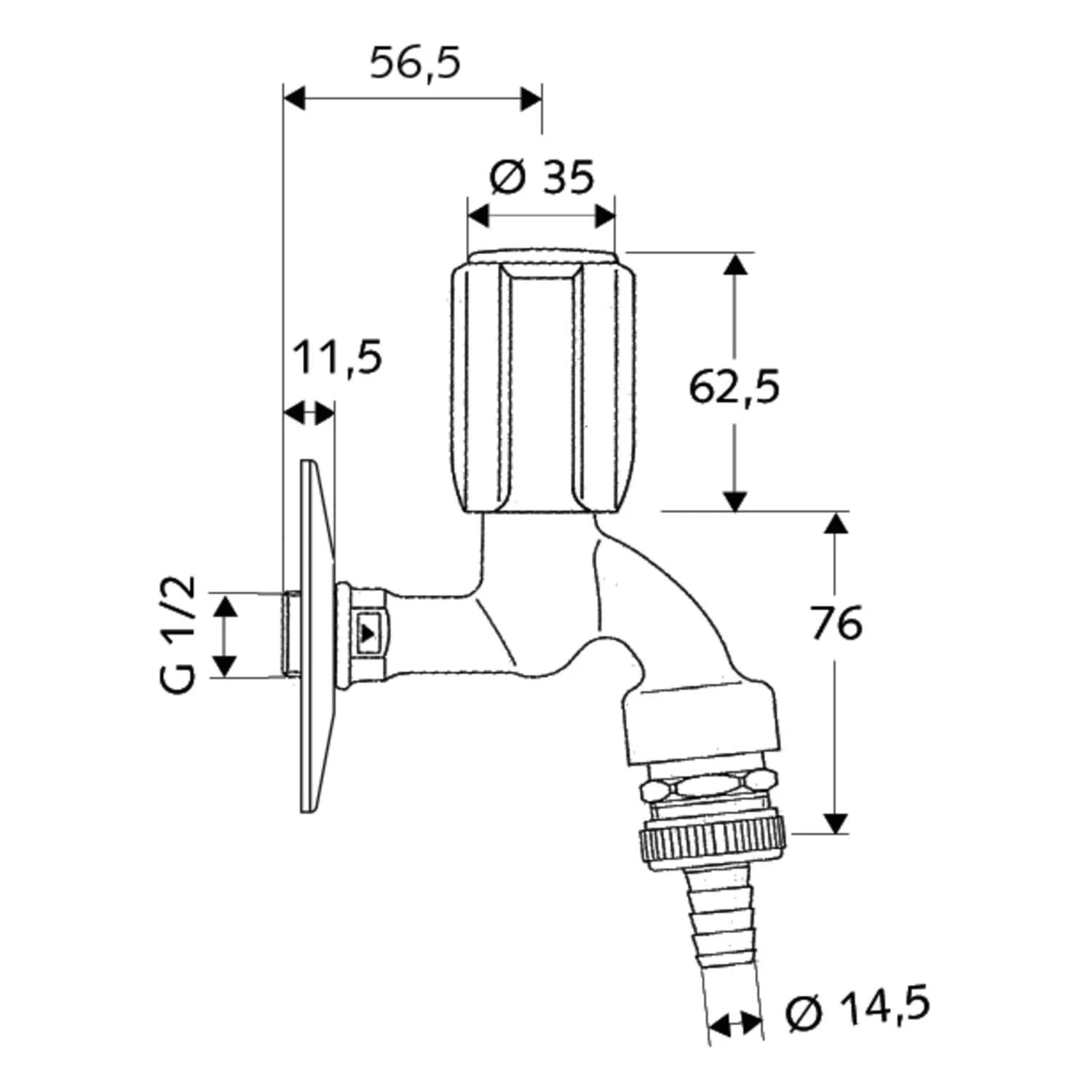 - Abgang: Schlauchverschraubung Ø 1,5 cm (DN 20 G 3/4 AG)