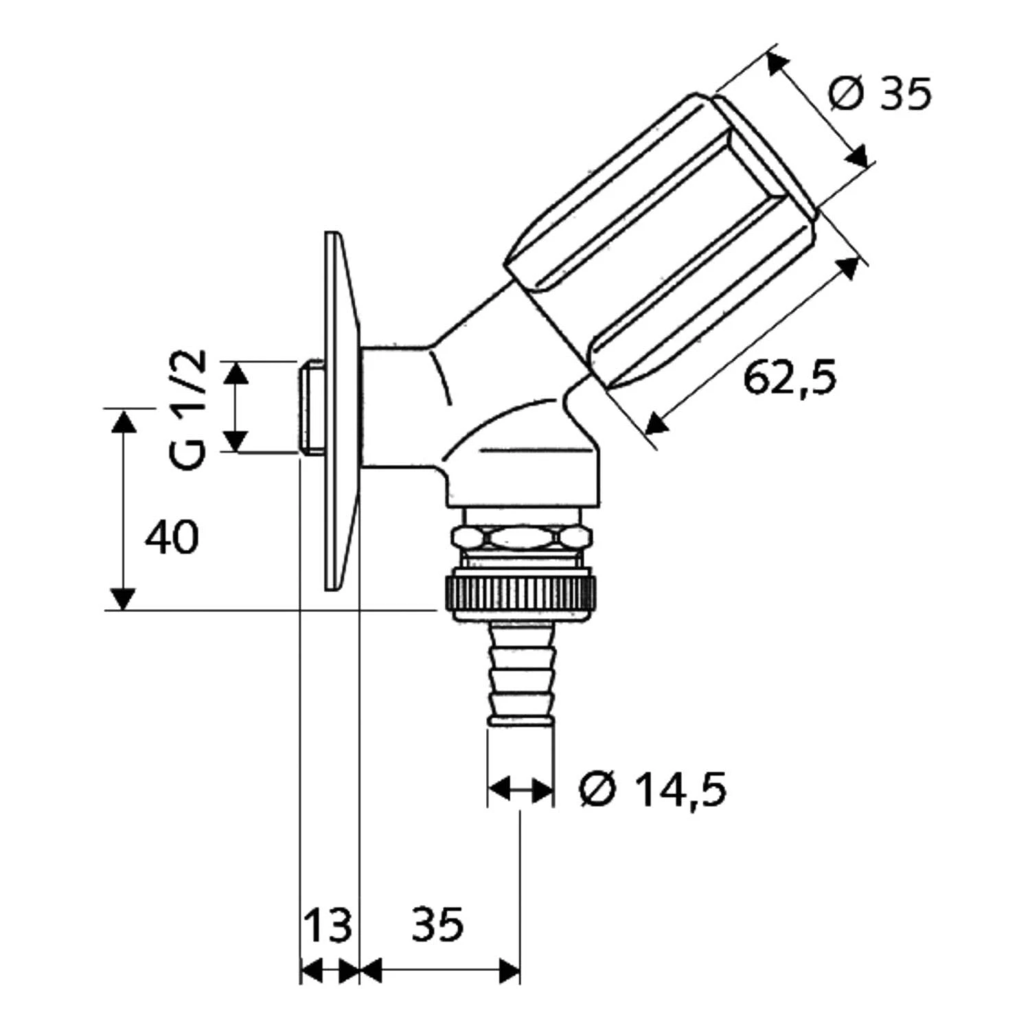 - Abgang: Schlauchverschraubung Ø 1,5 cm (DN 20 G 3/4 AG)