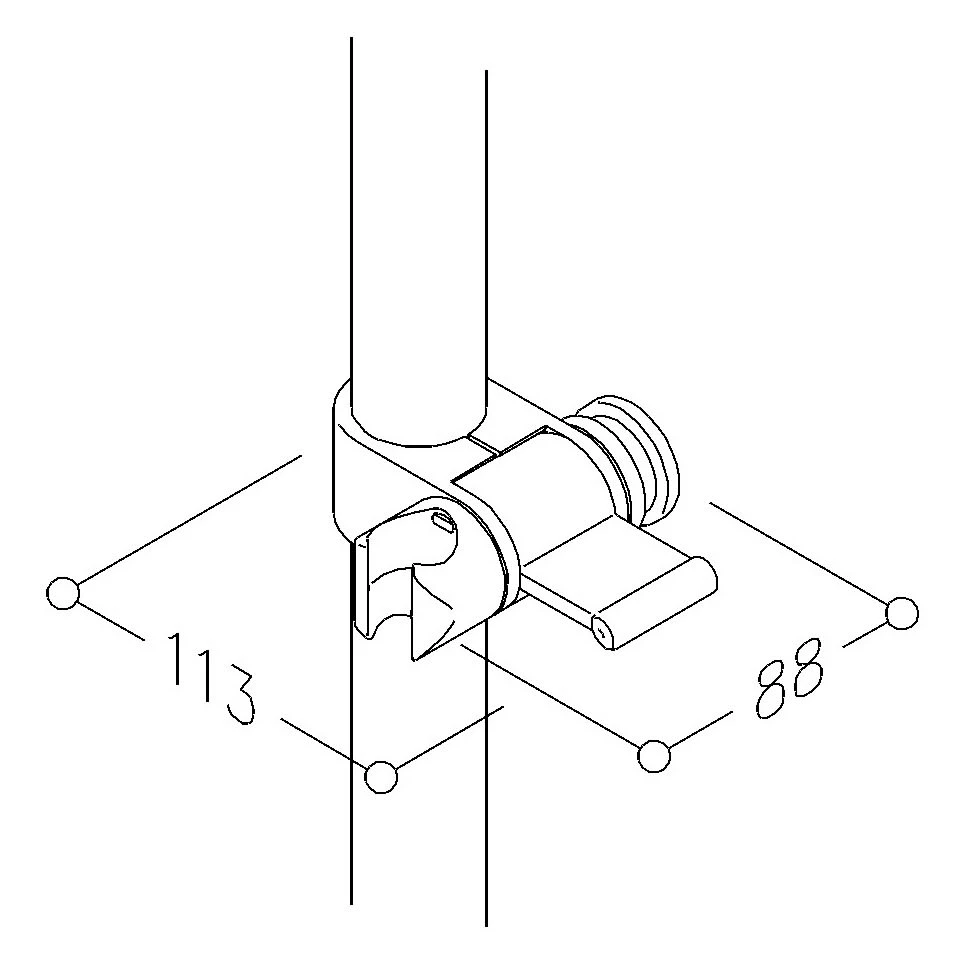 - stufenlose Höhen- und Winkeleinstellung der Brause
