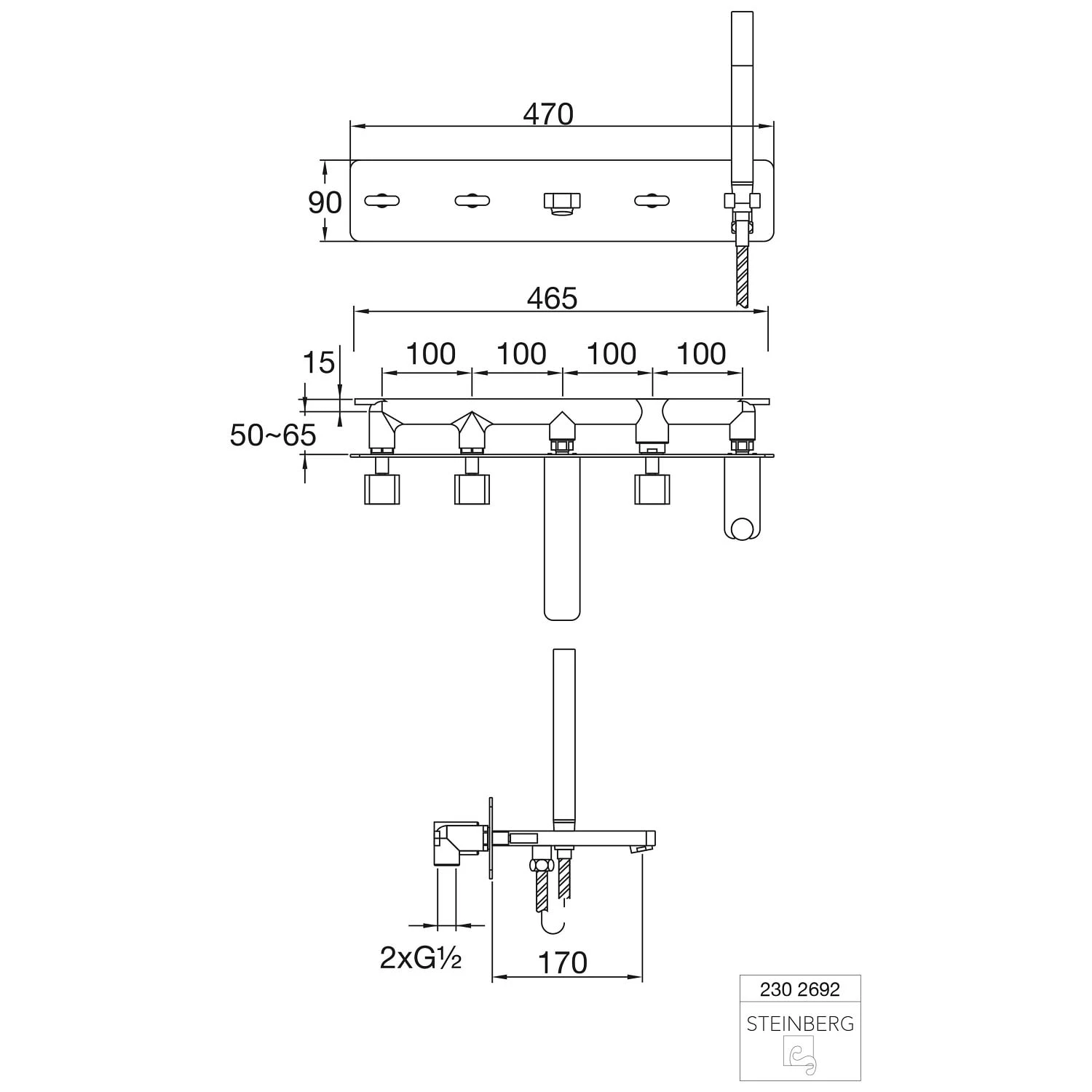 Steinberg Serie 230 5-Loch-Wanne/Brause-Wandarmatur