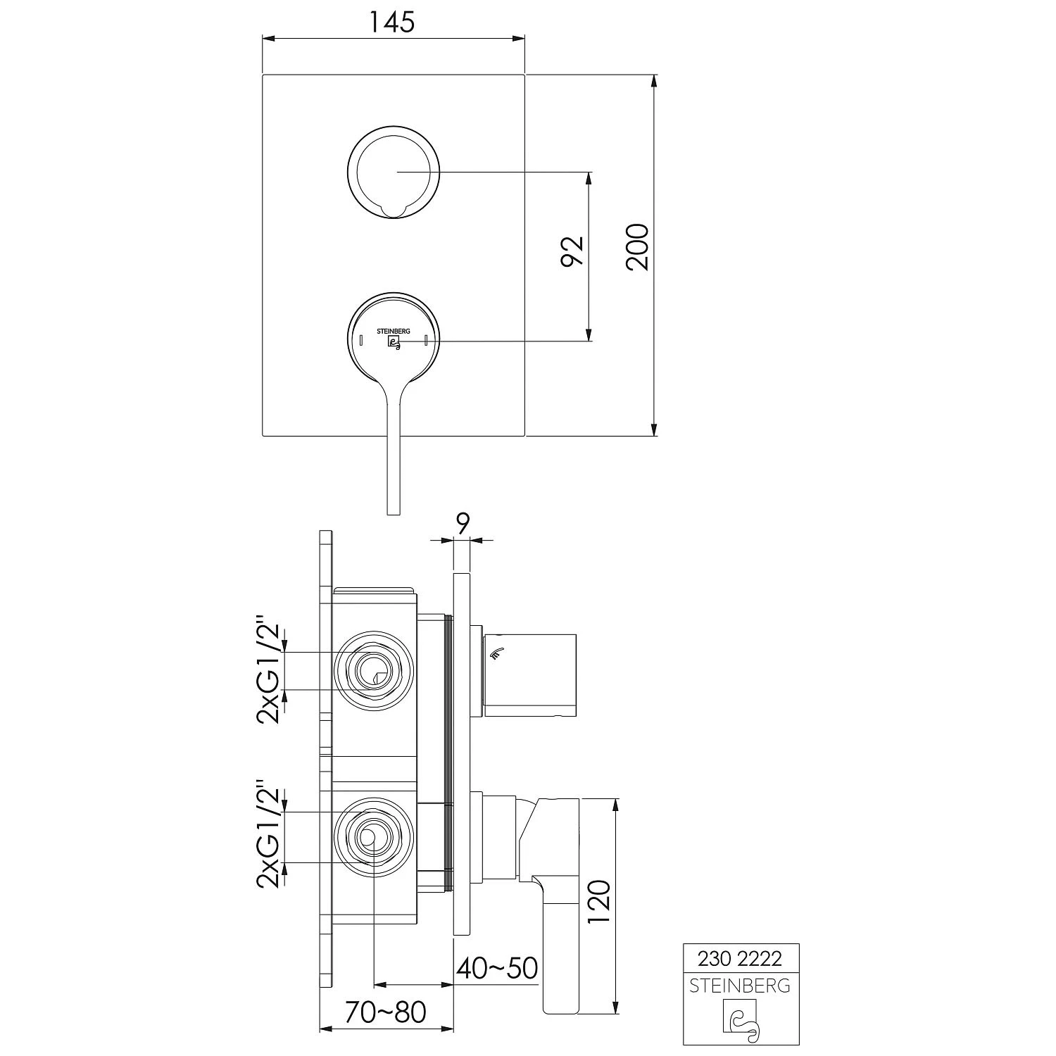 Steinberg Serie 230 Fertigmontageset für Wannen/Brause-Einhebelmischbatterien