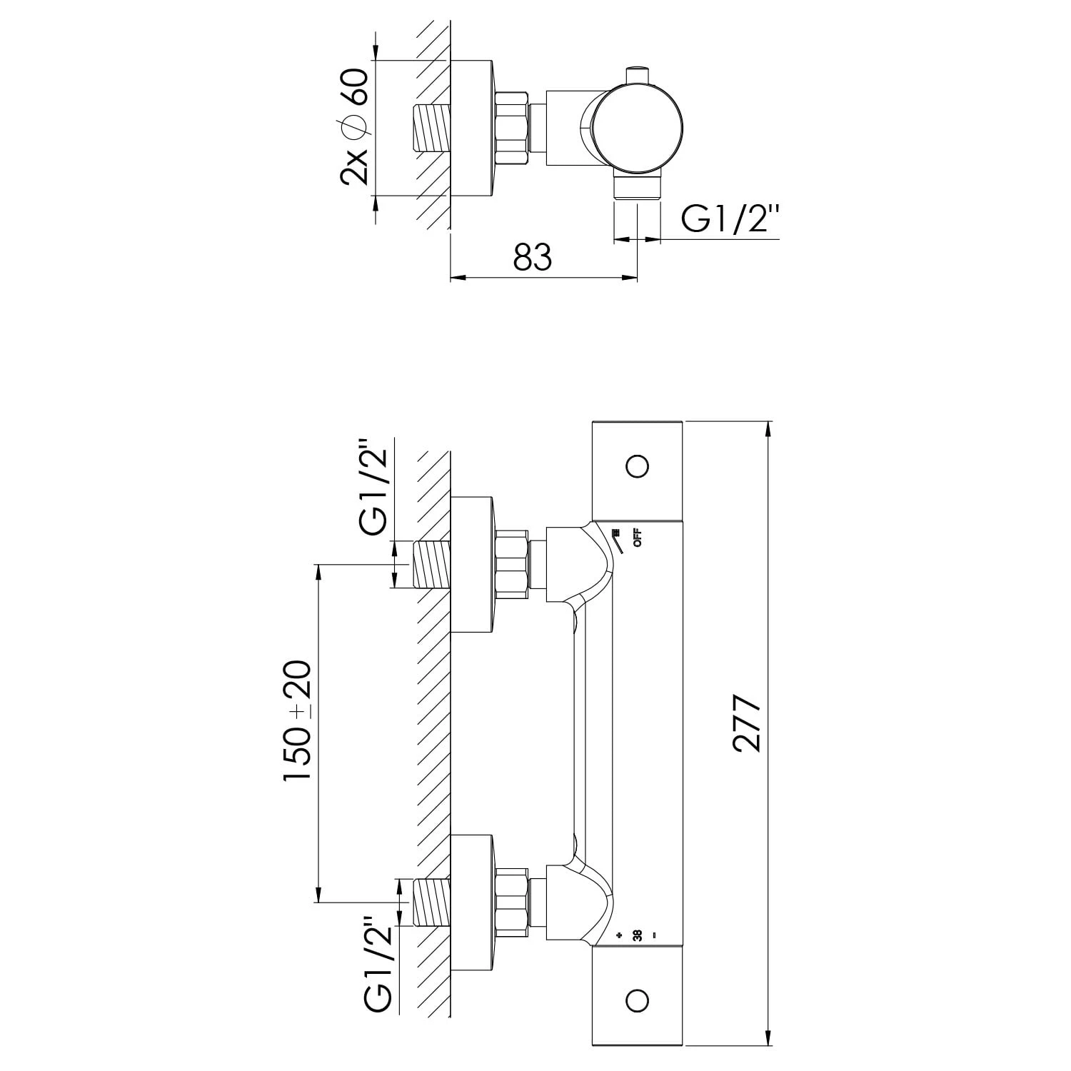 Steinberg Serie 390 Brause-Aufputz-Thermostat 1/2″