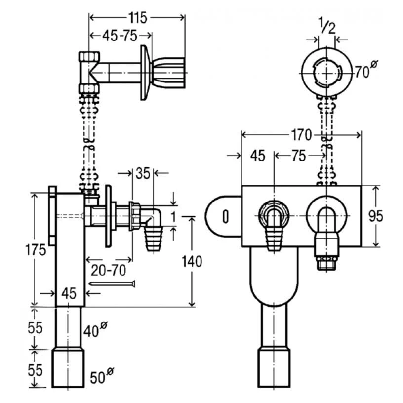 - Anschlussbogen mit Rückflussverhinderer und Rohrbelüfter